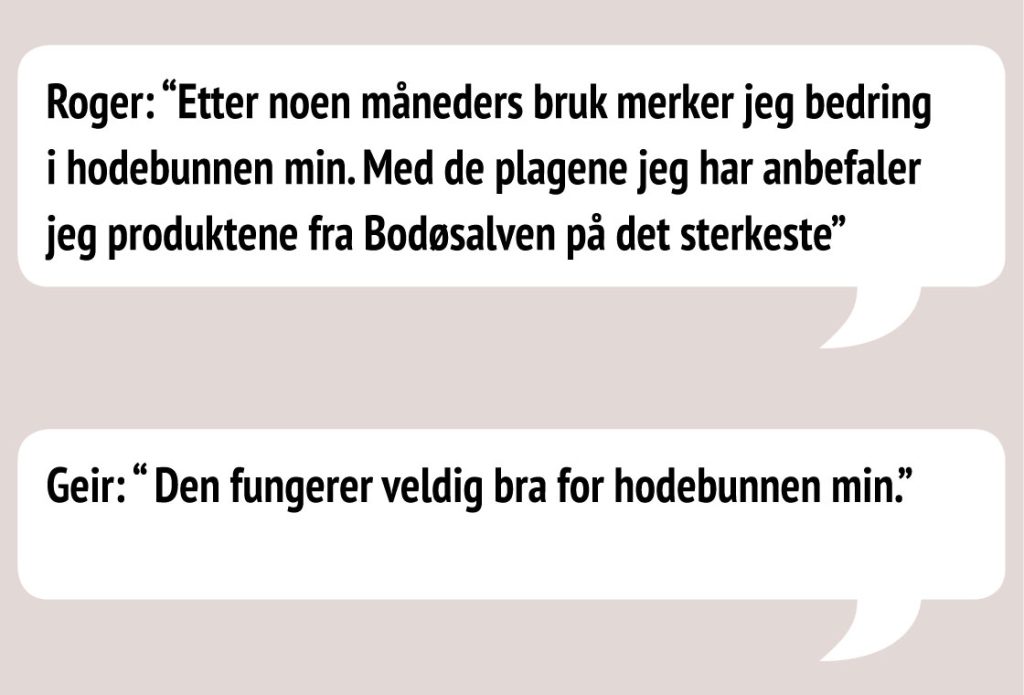 “Jeg har hele livet slitt med eksem og tørr hud, spesielt om vinteren. Etter å ha prøvd mange produkter uten varig hjelp, fikk jeg endelig gode resultater med Bodøsalven.