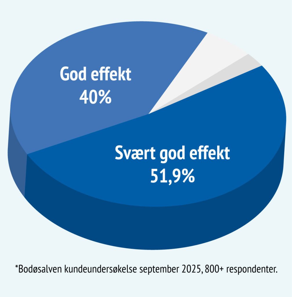 I vår store kundeundersøkelse* svarer 9 av10 at de opplever god eller svært god effekt på spørsmålet ‘Hvor godt synes du at Bodøsalven-produktene har fungert for deg?’